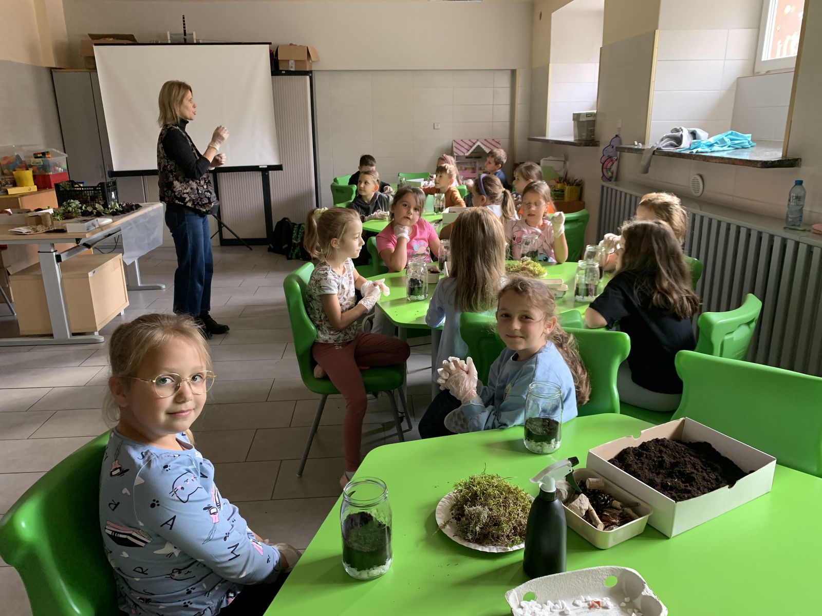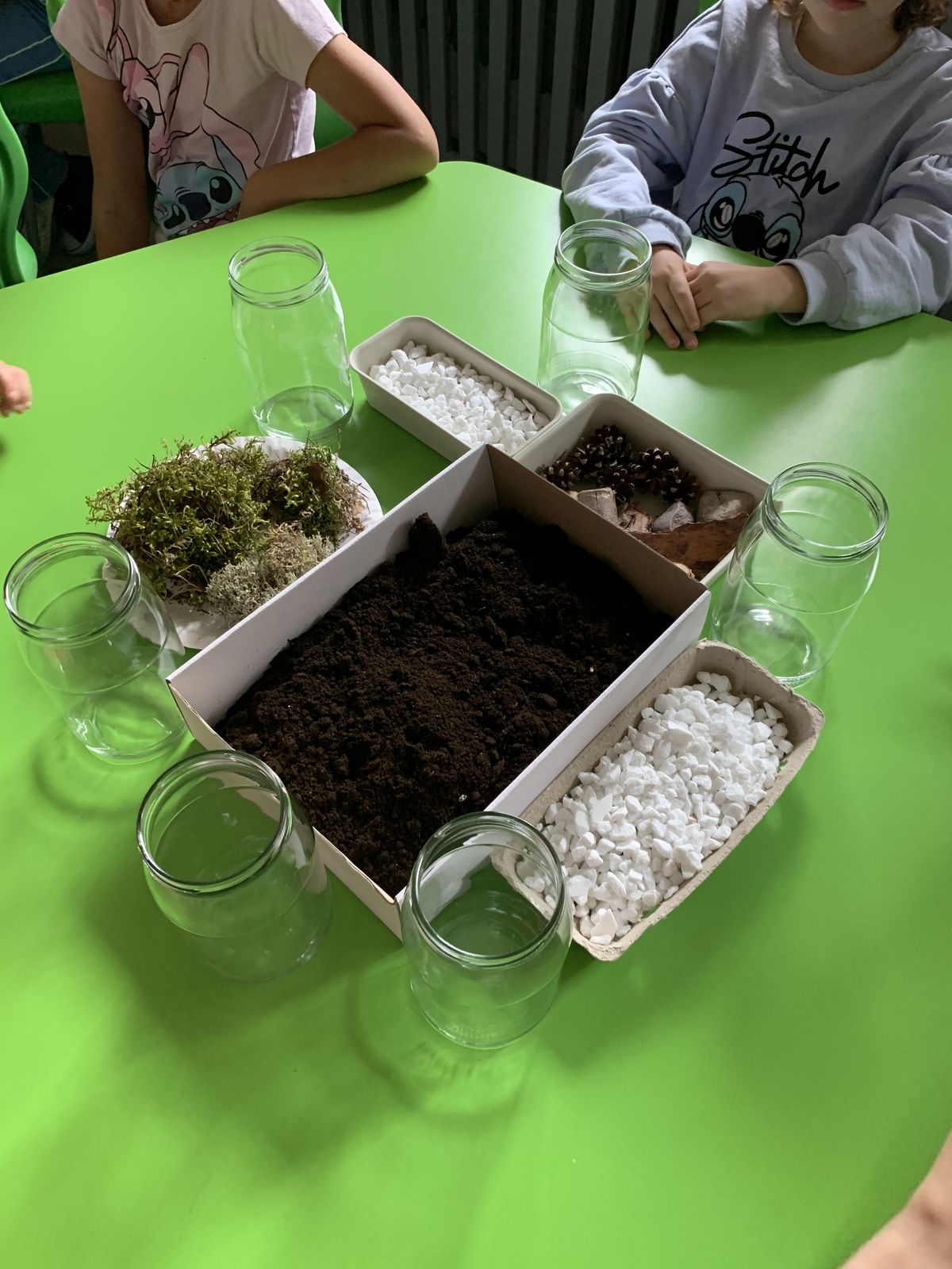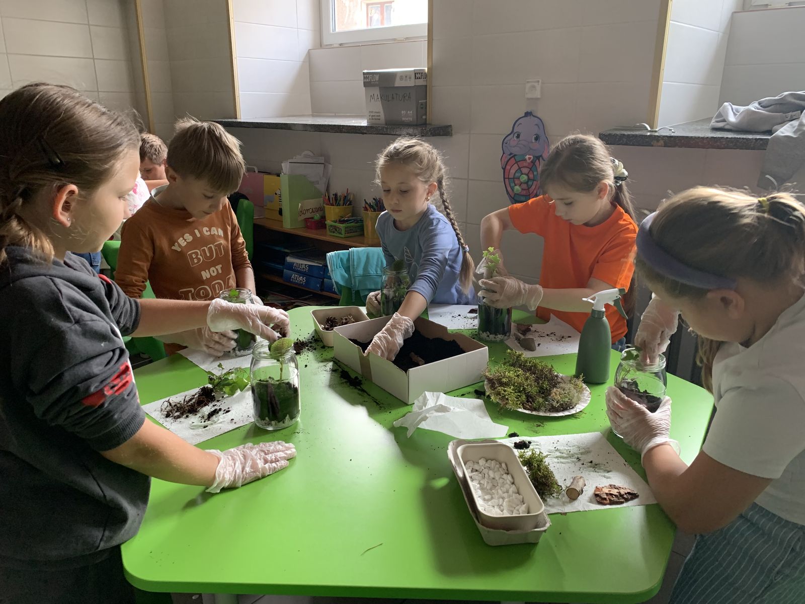 W części praktycznej eko-warsztatów uczestnicy stworzyli własne mini-ekosystemy w słoikach, składające się z podłoża, roślin, kamyczków, kory drzewnej i szyszek. Dzieci zabrały własnoręcznie wykonane kompozycje do swoich domów, by o nie dbać i obserwować rozwój roślin.