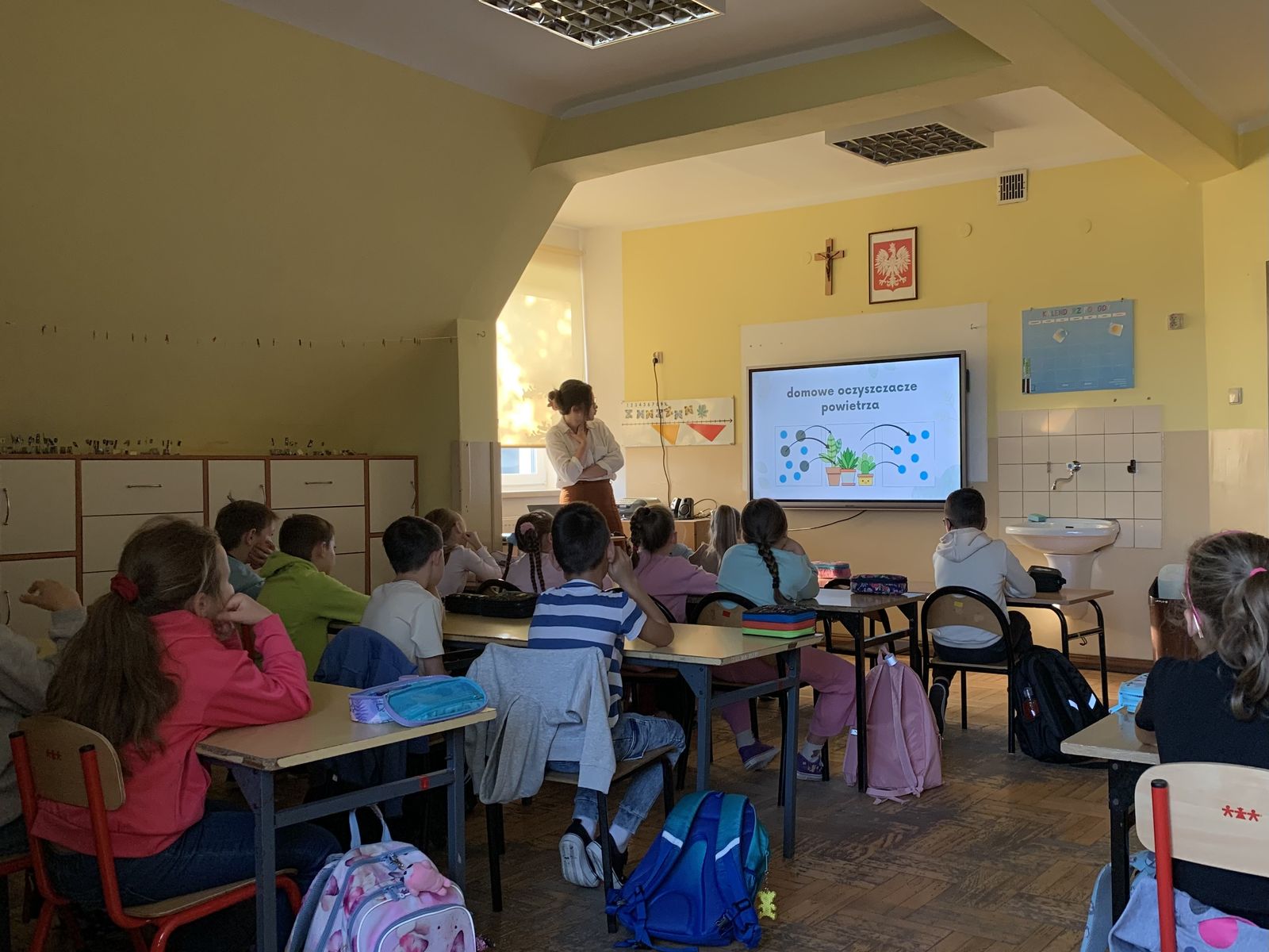 Podczas części teoretycznej uczestnicy rozmawiali o znaczeniu powietrza dla życia ludzi i zwierząt, o metodach pomiaru jakości powietrza oraz o roli roślin - naszych ''zielonych pomocników'' - w procesie oczyszczania powietrza. Dzieci zastanawiały się również nad tym, w jaki sposób zanieczyszczenia wpływają na zdrowie, środowisko i gospodarkę oraz jakie korzyści ekologiczne płyną z tworzenia mini-ekosystemów w słoiku. Uczniowie mieli możliwość sprawdzić swoją wiedzę, uczestnicząc w quizach i rozwiązując krzyżówki.