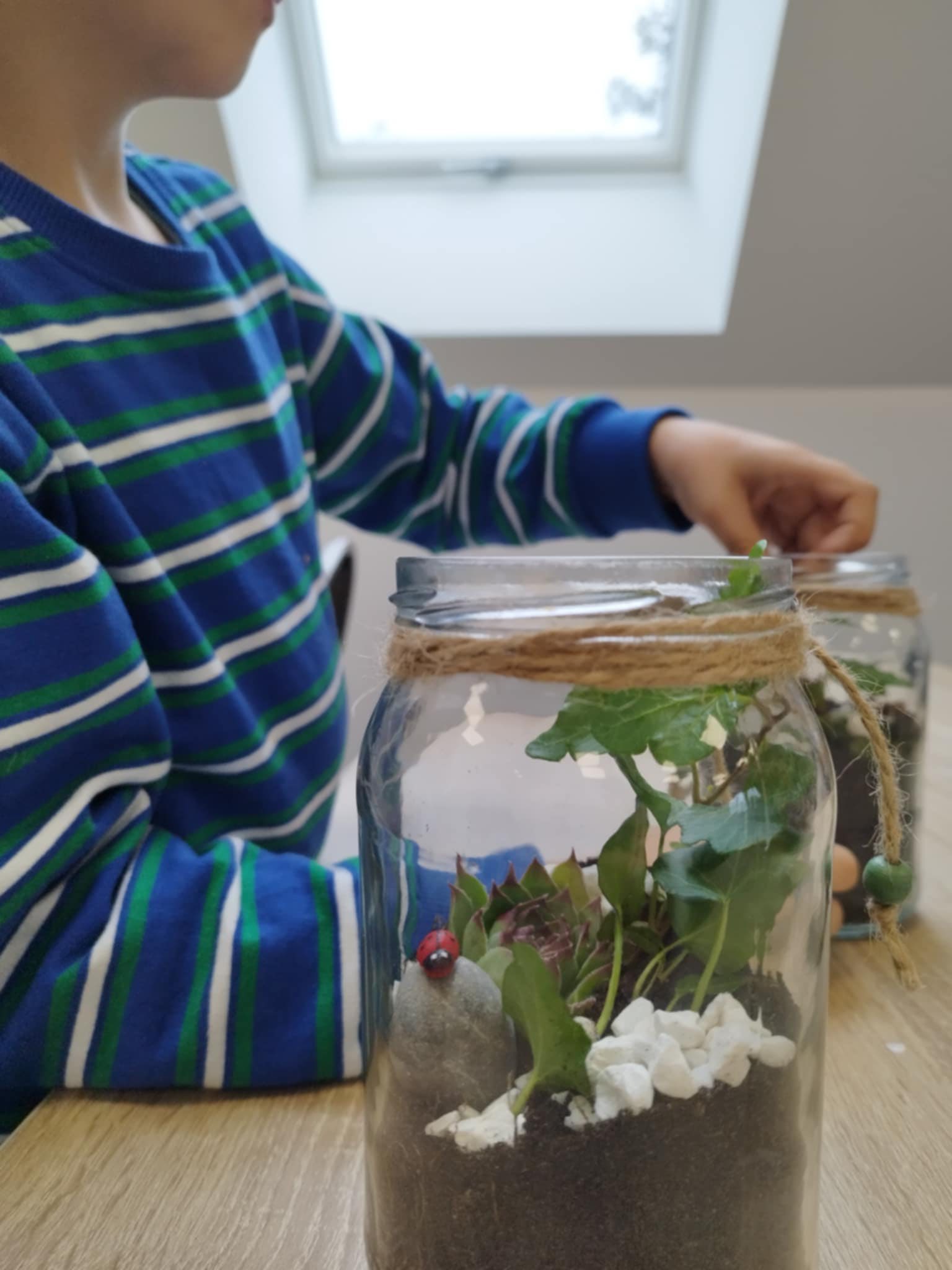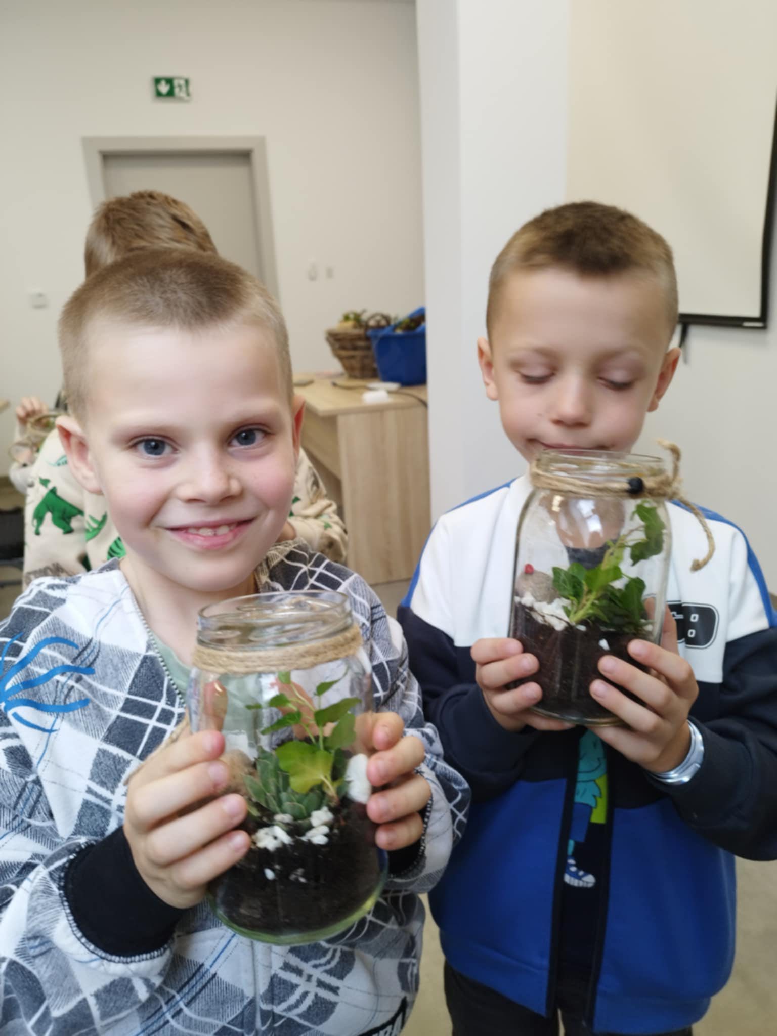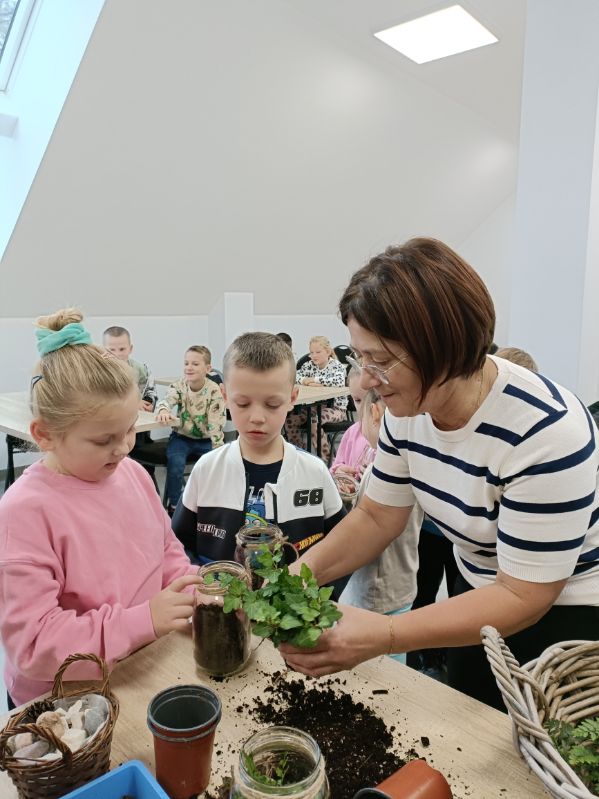 W części praktycznej eko-warsztatów uczestnicy stworzyli własne mini-ekosystemy w słoikach, składające się z podłoża, roślin, kamyczków i ozdób. Dzieci zabrały własnoręcznie wykonane kompozycje do swoich domów, by o nie dbać i obserwować rozwój roślin.