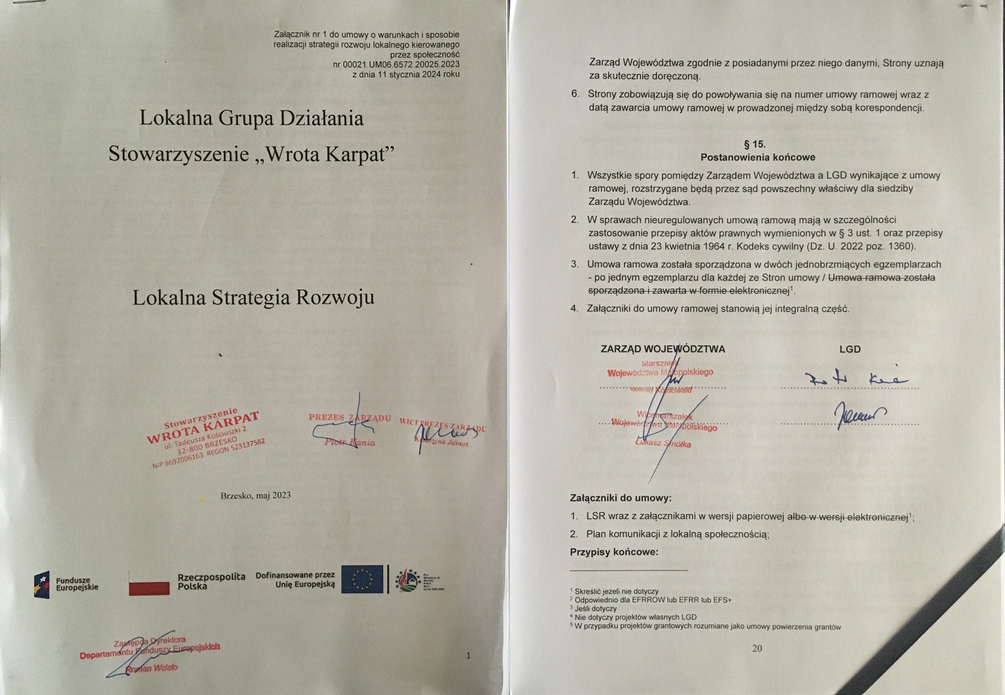 W czwartek - 11 stycznia 2024 r. Stowarzyszenie ''Wrota Karpat'' podpisało umowę o wartości 37 344 203,60 zł (ok. 8,5 mln euro) na realizację zadań określonych w Lokalnej Strategii Rozwoju! To największa kwota w Małopolsce i jedna z największych (zdaniem niektórych - największa) w Polsce!
