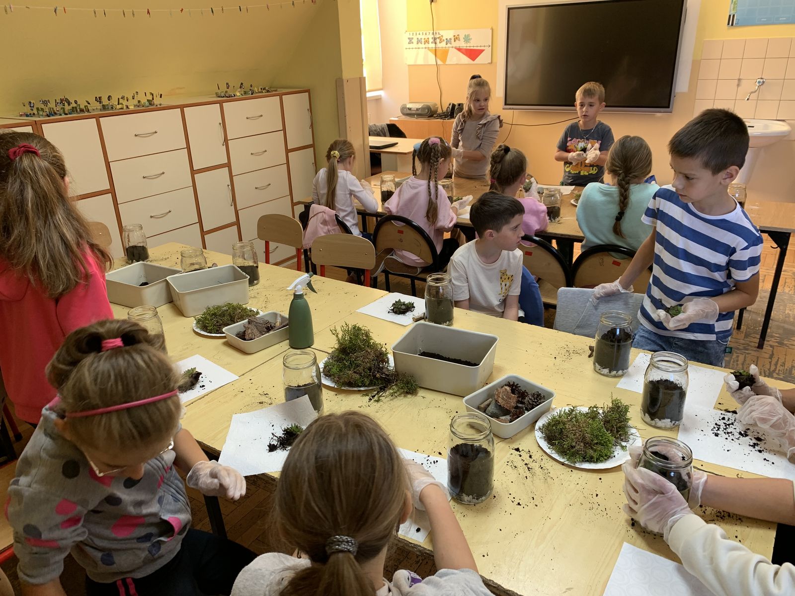 W części praktycznej eko-warsztatów uczestnicy stworzyli własne mini-ekosystemy w słoikach, składające się z podłoża, roślin, kamyczków, kory drzewnej i szyszek. Dzieci zabrały własnoręcznie wykonane kompozycje do swoich domów, by o nie dbać i obserwować rozwój roślin.