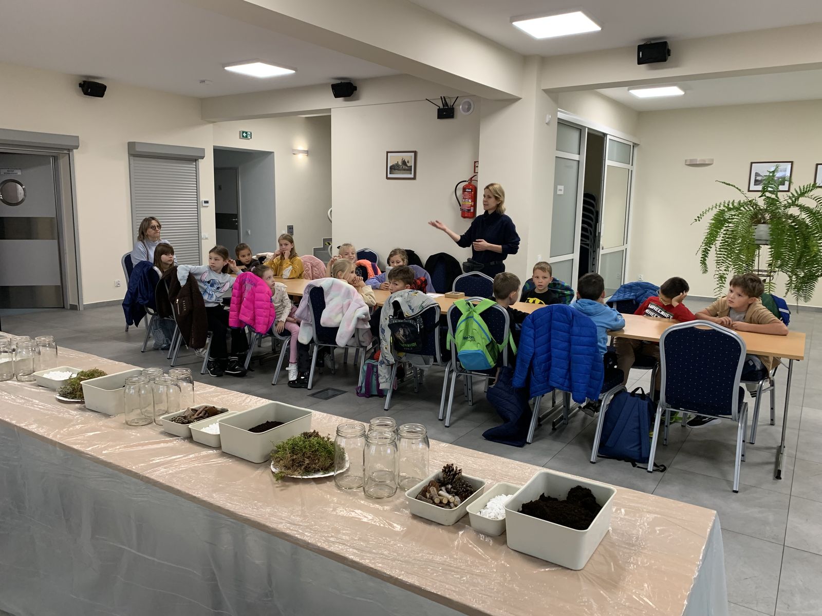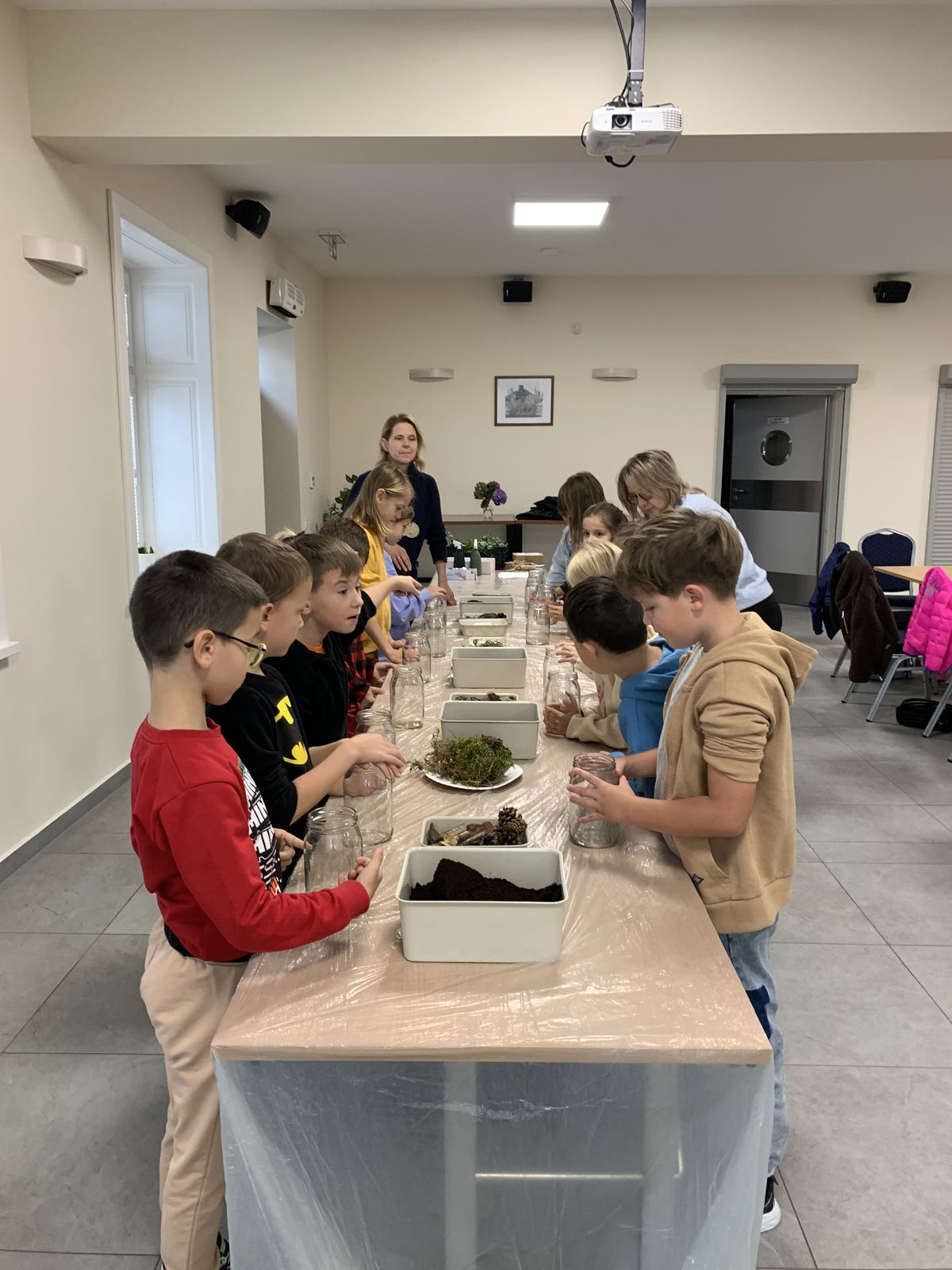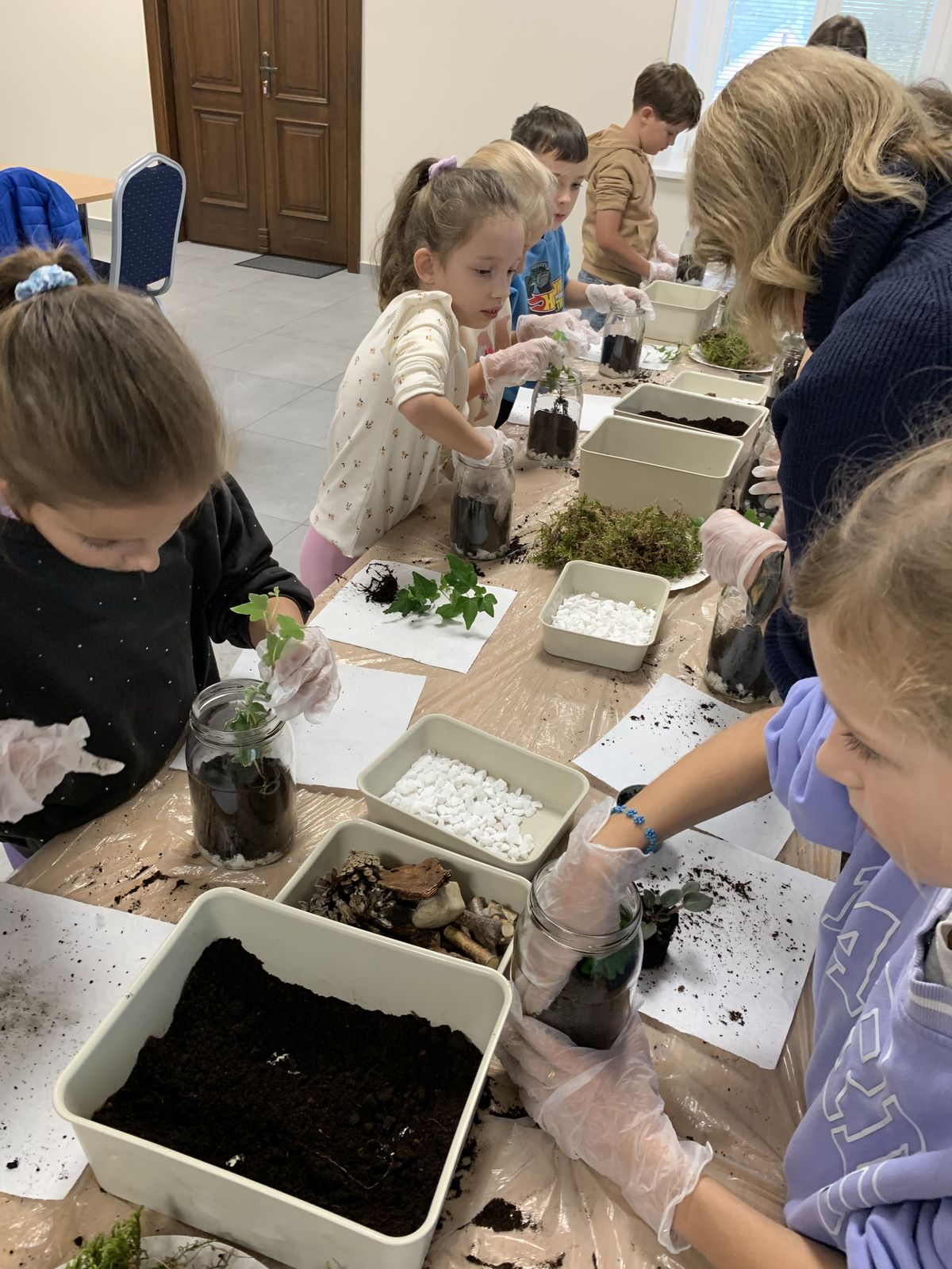 W części praktycznej eko-warsztatów uczestnicy stworzyli własne mini-ekosystemy w słoikach, składające się z podłoża, roślin, kamyczków, kory drzewnej i szyszek. Dzieci zabrały własnoręcznie wykonane kompozycje do swoich domów, by o nie dbać i obserwować rozwój roślin.