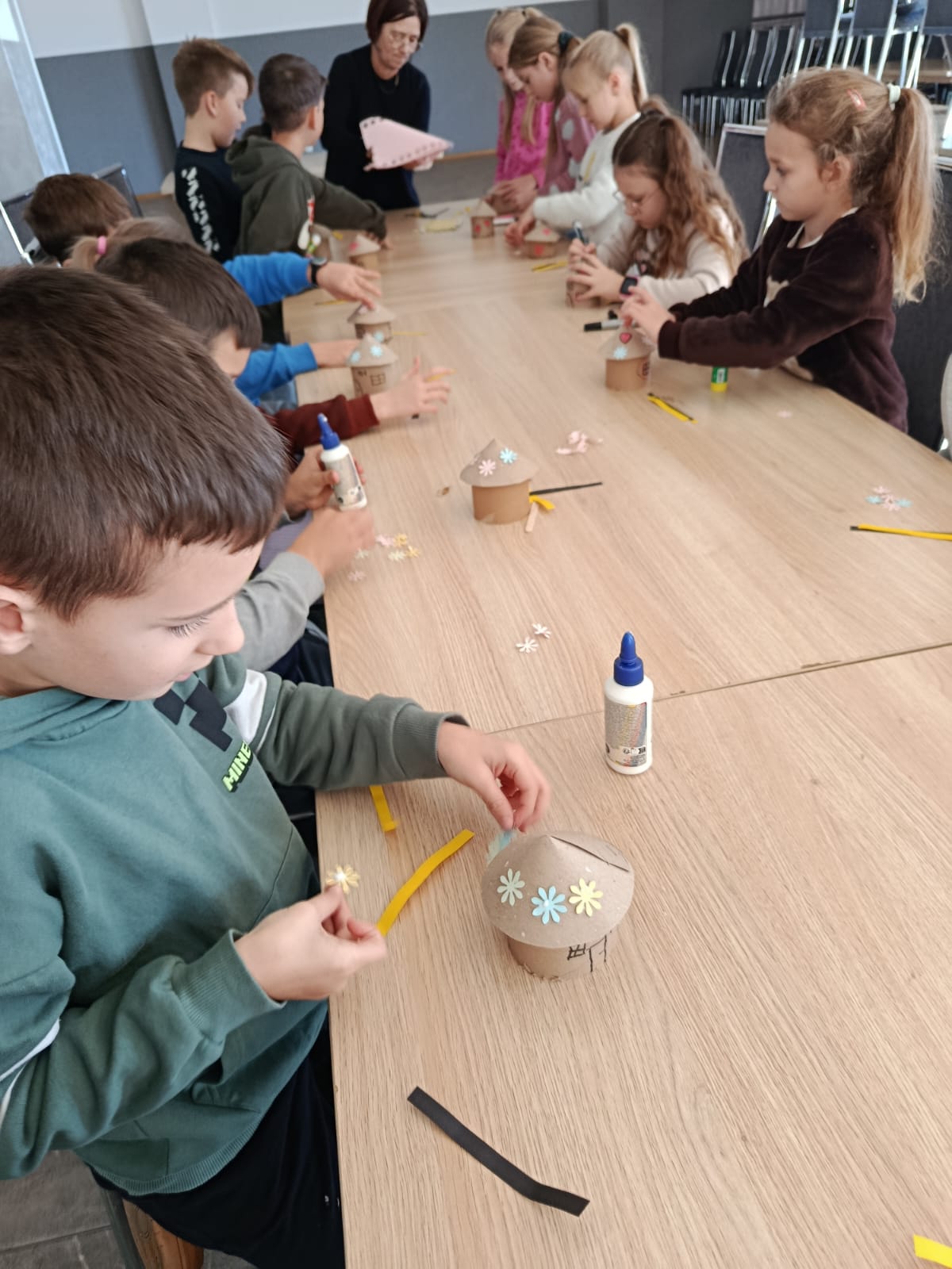 20 listopada 2025 r. w Domu Kultury w Mogilnie odbyły się kolejne warsztaty zrealizowane w ramach projektu. Podczas części edukacyjnej uczestnicy rozmawiali o kluczowej roli owadów zapylających, zwłaszcza pszczół, w środowisku naturalnym oraz o konieczności ich ochrony. Omówione zostały również zagadnienia związane z bioróżnorodnością i wpływem działalności człowieka na środowisko naturalne. W części warsztatowej uczestnicy stworzyli piękne pszczółki i domki dla dzikich zapylaczy.